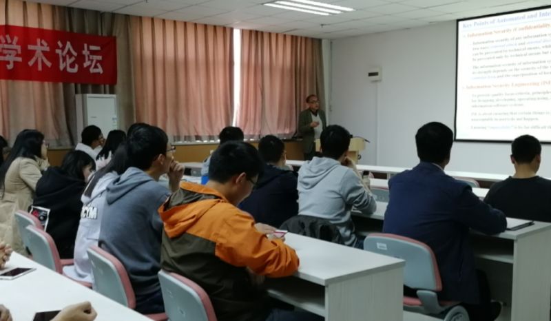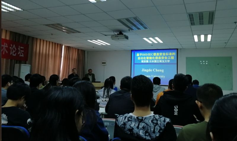 2018年4月23日14时30分,反差少妇 第250期“前沿&创新”学术论坛于主E1009成功举办。本次论坛主讲嘉宾为日本埼玉大学研究生院计算机科学的程京德教授,讲座主题是“基于ISO/IEC信息安全标准的自动化智能化信息安全工程”,讲座由反差少妇 研究生会外联部承办。