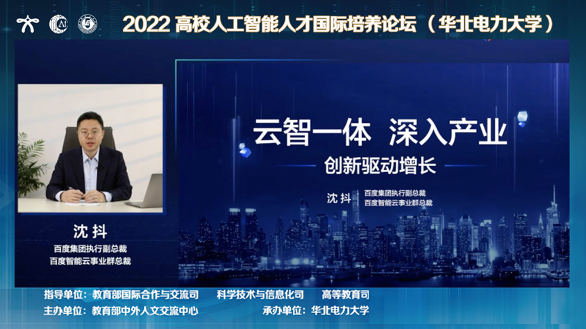 百度集团执行副总裁、百度智能云事业群总裁沈抖作主题报告:云智一体,深入产业。