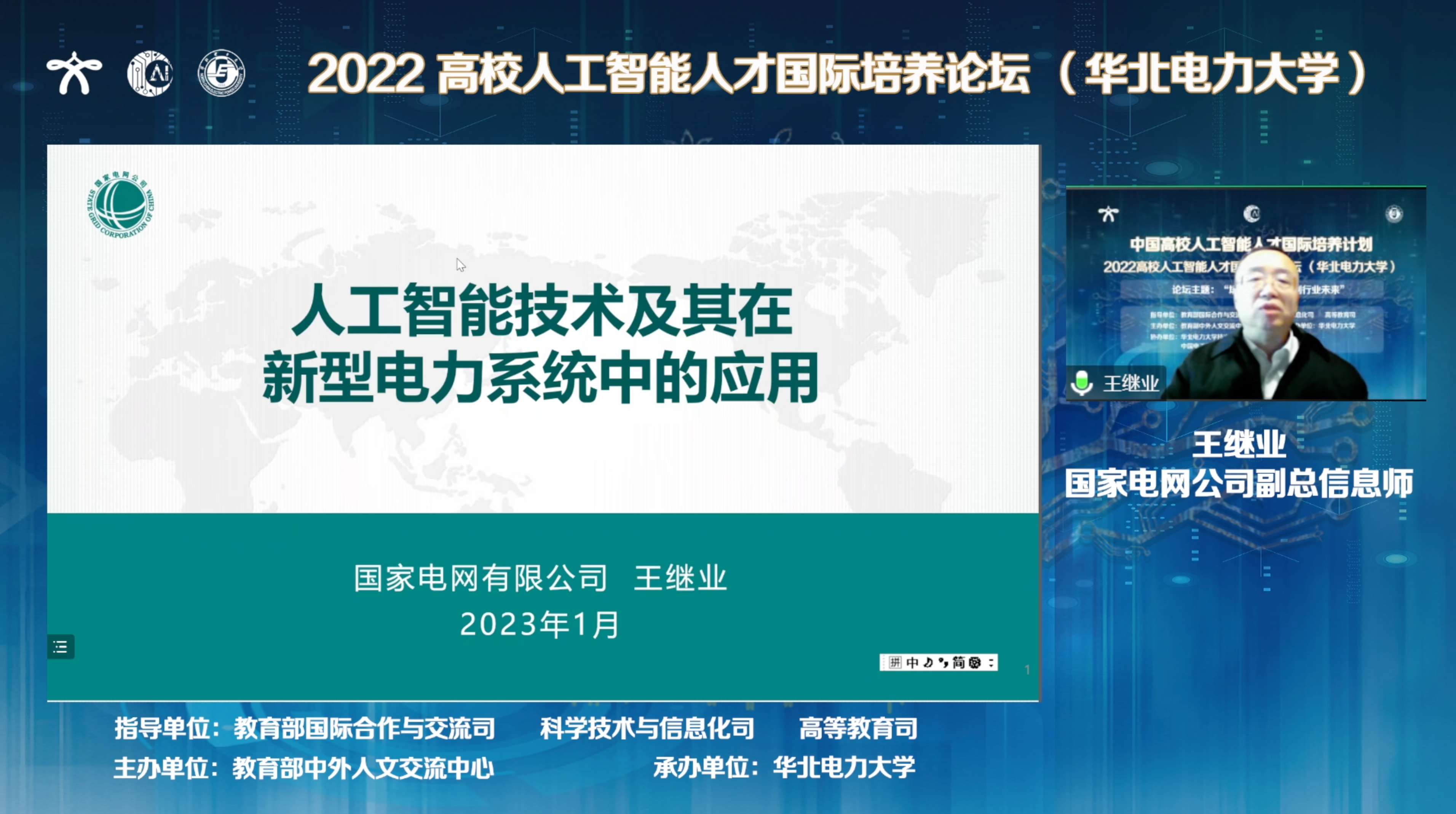 国家电网公司副总信息师王继业作主题报告:人工智能技术及其在新型电力系统中的应用。