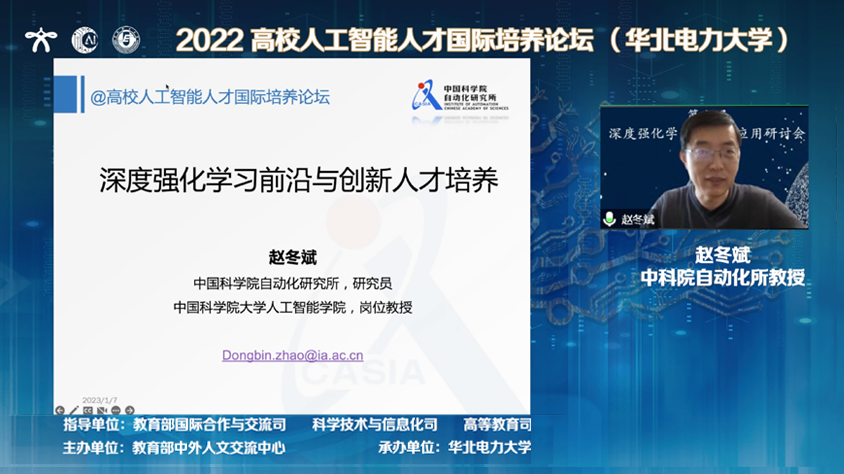 中国科学院自动化研究所研究员赵冬斌作主题报告:深度强化学习前沿与创新人才培养。
