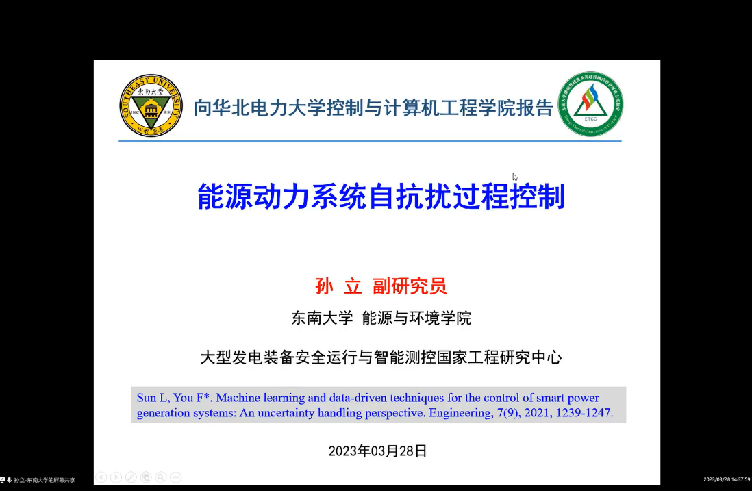 在本次报告中,孙立以自抗扰理论及其工程应用为汇报主题,重点介绍了自抗扰过程控制的稳定性保障方法、基于扩张状态观测器的前馈与反馈复合控制策略、时滞过程的自抗扰控制器定量整定方法以及自抗扰控制在火电机组、燃料电池及锂离子电池方面的应用进展。讲座深入浅出地解读了自抗扰过程控制的发展背景及理论实质,讨论了自抗扰控制与其他先进控制策略的融合方法,展示了自抗扰过程控制在工程实践中的应用效果。