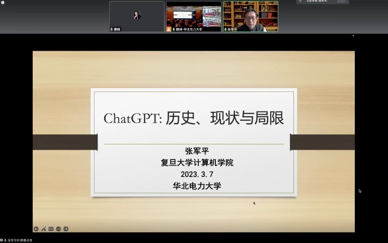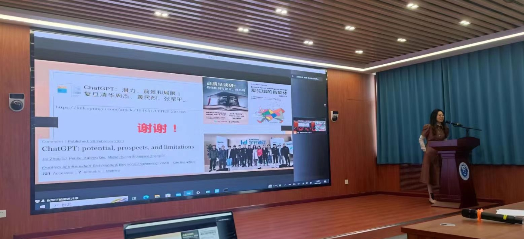特别邀请复旦大学计算机科学技术学院张军平教授以《ChatGPT:历史、现状与局限》为题为全院师生作学术报告。本次报告由人工智能与物联网工程教研室主任滕婧主持。