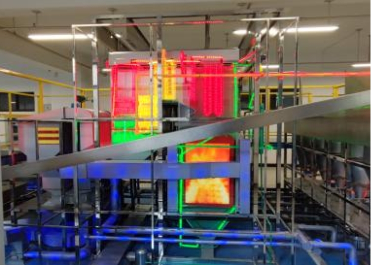 该实验平台由DCS控制系统及实物模型组成,模拟了1000MW超超临界火电机组发电的全部流程,包括燃煤输送、锅炉、汽机、励磁发电、脱销、除尘、脱硫以及化学水处理等子系统,实物模型上装有测量仪表以及执行机构。该平台通过DCS控制系统实现对实物模型的控制联动,可将实际发电指令下达各类仪表中展示真实结果,从而实现对实际发电过程的全景再现。